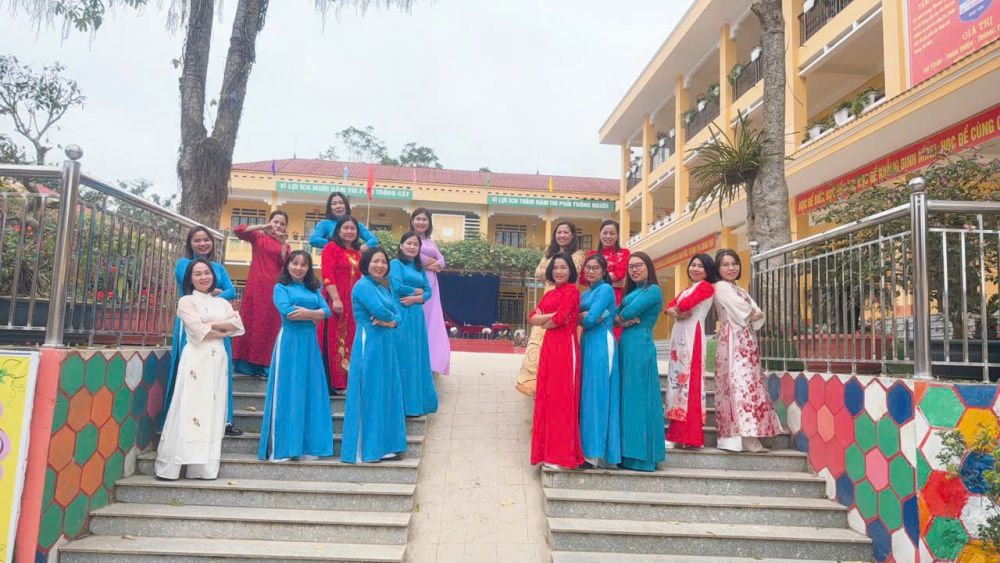 Trong suốt tuần lễ diễn ra hoạt động, hình ảnh các cô giáo duyên dáng trong những tà áo dài thướt tha đã trở thành điểm nhấn nổi bật trong khuôn viên nhà trường. Mỗi ngày đến trường là một sắc màu khác nhau: khi thì rực rỡ với áo dài đỏ thắm, lúc lại dịu dàng trong sắc tím thủy chung hay nền nã với gam màu pastel nhẹ nhàng. Tà áo dài truyền thống không chỉ tôn lên vẻ đẹp thanh lịch, mềm mại của người phụ nữ Việt Nam mà còn thể hiện sự trang trọng, chuẩn mực của người giáo viên trong môi trường giáo dục.